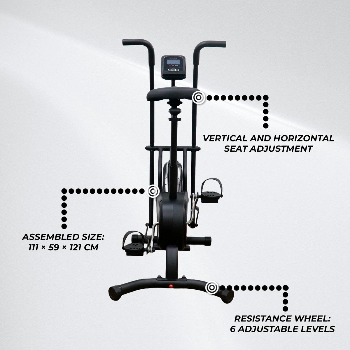 Luftmodstand: - Jo hårdere du træder i pedalerne og bevæger armene, desto større bliver modstanden, hvilket giver en dynamisk og effektiv træningsoplevelse.