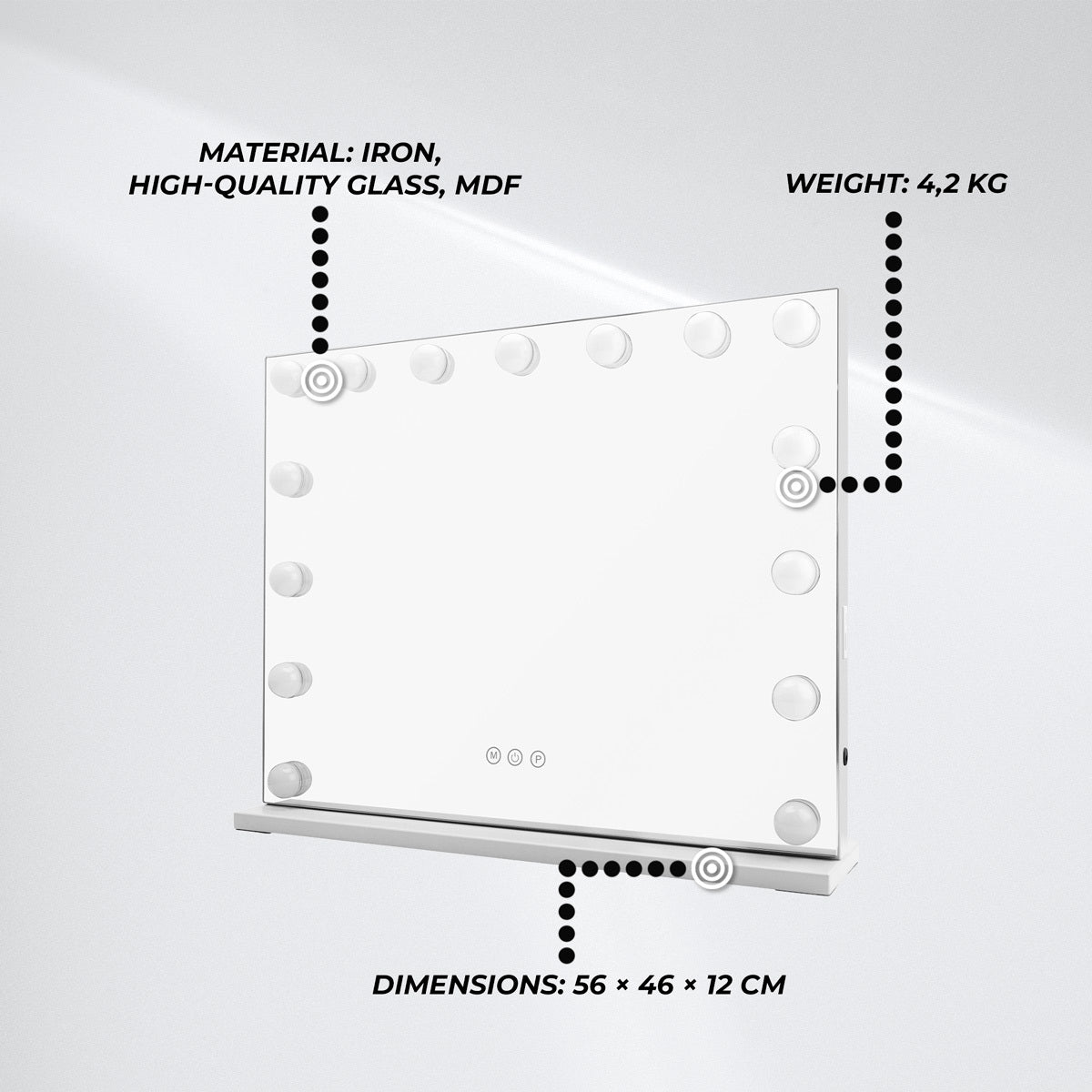 Lykke Makeup Spejl med Lys Hollywood 56x12x46cm