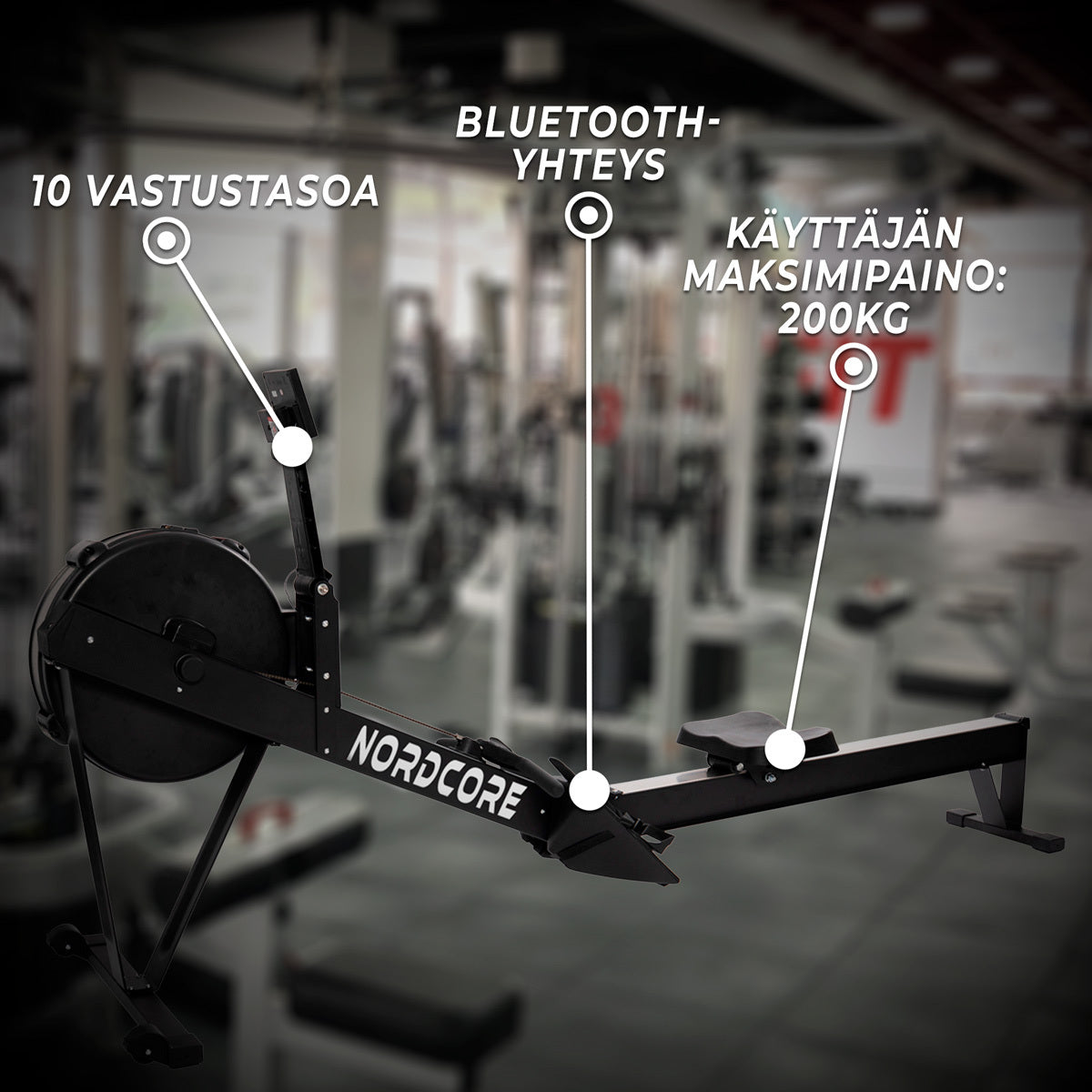 Laadukas Nordcore Soutulaite takaa tehokkaan ja ja raskaan treenin käyttäjälle. Vahvoista materiaaleista valmistettuna laite kestää kovaakin treenaamista, ja sen avulla saat irti maksimitehot itsestäsi. 10 eri vastustasoa antaa sinulle vapauden muokata treeniäsi oman kestävyytesi sekä mielesi mukaan, ja laitteen istuinosan muotoilu helpottaa pidemmänkin souturetken tekemistä ilman turhaa rasitusta. Soutulaitteessa on myös Bluetooth, jonka avulla seuraat treeniäsi kätevästi mobiililaitteella.