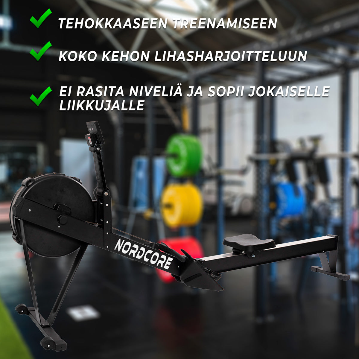 Nordcore Soutulaite! Soutulaite on loisto valinta kotikuntoilijalle, joka haluaa vaihtelua juoksuun tai pyöräilyyn. Se on tuttu jokaiselta kuntosalilta, eikä ihme sillä soutulaite on monipuolinen ja tehokas tapa liikkua. Lämmittely, kestävyysharjoittelu, intervallit ja yleiskuntoa ylläpitävä harjoittelu luonnistuu soutaen mainiosti. Vetoliike kohdistuu eritoten käsiin, selkään, hartioihin ja koko keskivartaloon ja jalkojen työntöliike taasen alavartaloon. Soutulaite ei rasita niveliä, joten se sopii jokaiselle liikkujalle.