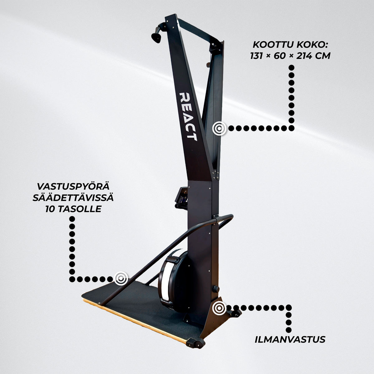 Kohtaa talvi huippukunnossa React Hiihtolaite Air -hiihtolaitteen avulla. Tämä edistyksellinen hiihtolaite tarjoaa sinulle mahdollisuuden harjoitella monipuolisesti ja tehokkaasti omassa kodissasi. React Hiihtolaite Air on suunniteltu simuloimaan aitoa hiihtokokemusta käyttäen ilmanvastustusta, joka lisääntyy vedon voimakkuuden myötä. Vahva lattiatuki takaa laitteen vakauden kovassakin treenissä. Intuitiivinen LCD-näyttö pitää sinut ajan tasalla harjoituksesi keskeisistä tiedoista: kuljetusta matkasta, kulutetuista kaloreista ja kuluneesta ajasta. Bluetooth-yhteys mahdollistaa harjoitustietojesi seurannan ja analysoinnin älylaitteellasi. Aloita matkasi kohti parempaa kuntoa ja tehokkaampaa harjoittelua React Hiihtolaite Air -hiihtolaitteen avulla!