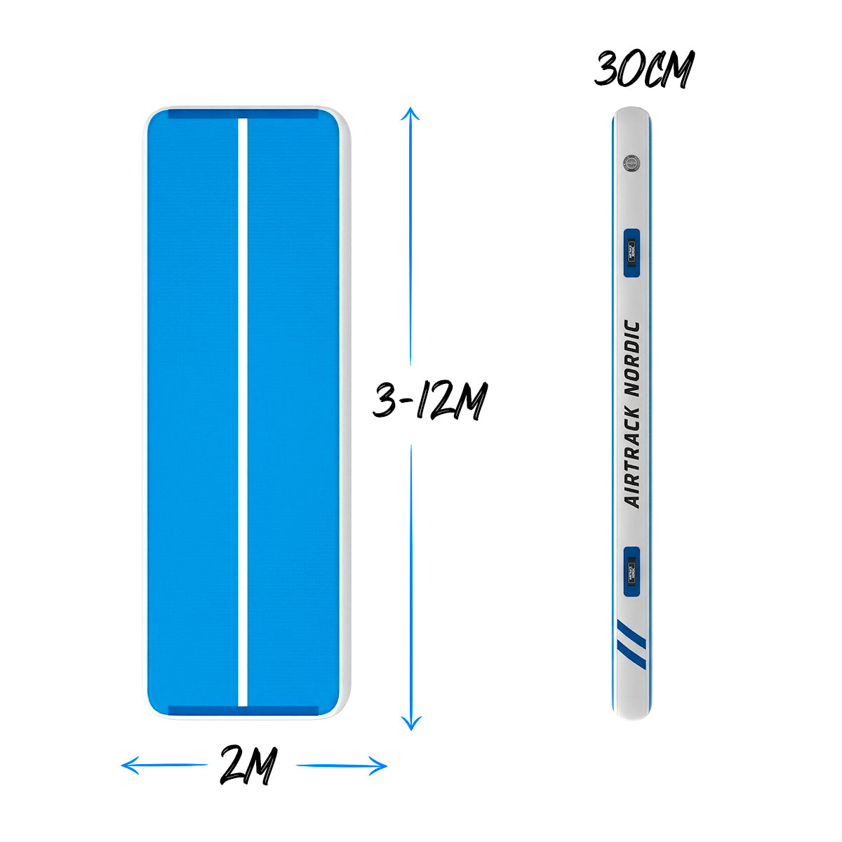 AirTrack Nordic Gym Wide on valikoimamme paksuin (30 cm) ilmavolttipatja, joka täyttää vaativammankin harrastajan kriteerit. Huippuluokkaiset Gym Wide -patjat soveltuvatkin erinomaisesti seuroille, saleihin ja harrastajien käyttöön. Myös kotikäyttäjät nauttivat tämän patjan korkeista pompuista! Gym Wide on valittavana neljässä eri pituudessa: 3 m, 5 m, 8 m ja 12 m. Se on leveydeltään 2 metriä ja paksuudeltaan 30 cm.