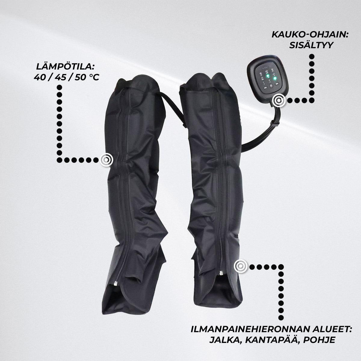 - Korkealaatuinen ilmanpainehierontalaite: Suunniteltu tarjoamaan paras mahdollinen mukavuus ja tehokkuus jalkojen, kantapäiden ja pohkeiden alueen hieronnassa.